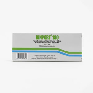 Rinport 180 mgFexofenadina clorhidrato 180 mgCaja 10 tabletas en blíster de 10 tabletas cada unoVer más
