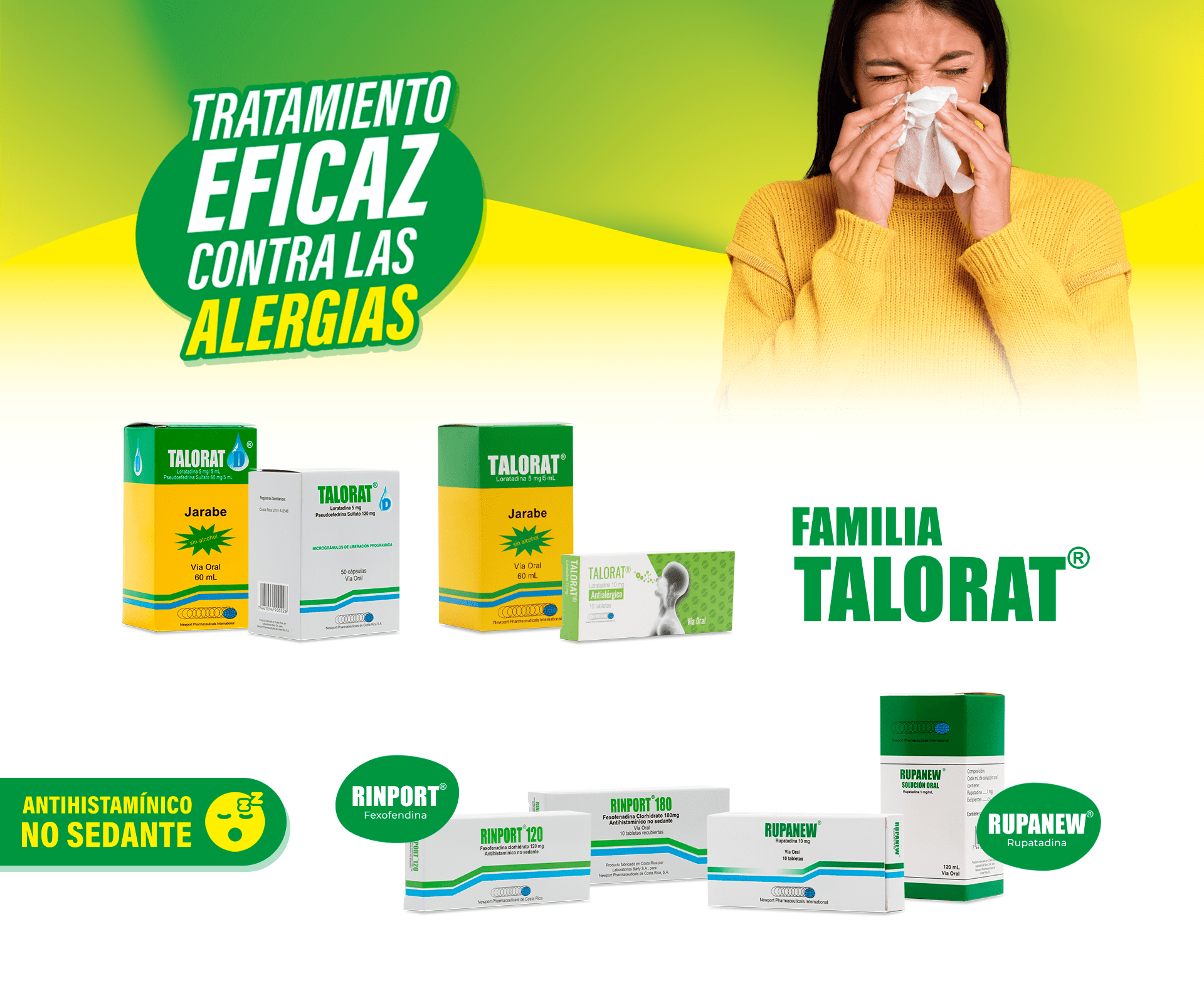 Rinport 120 mgFexofenadina clorhidrato 120 mgCaja 10 tabletas en blíster de 10 tabletas cada unoVer más